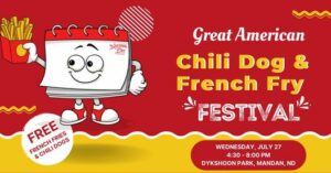 Join National Day Calendar and the Fry Love Express from Checkers / Rally’s for a fun evening at Dykshoorn Park in Mandan, ND as we celebrate National Chili Dog Day. Dunk tank, face painting, balloon animals, music, entertainment and FREE French Fries and Chili Dogs! Bring your lawn chairs. Cornhole Tournament by 701 Capital City Cornhole.
