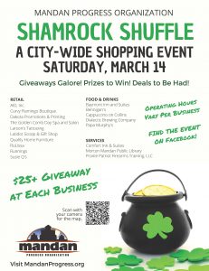 Calendar Add to Calendar Add to Timely Calendar Add to Google Add to Outlook Add to Apple Calendar Add to other calendar Export to XML When: March 14, 2020 all-day 2020-03-14T00:00:00-05:00 2020-03-15T00:00:00-05:00 Where: Mandan Merchants Contact: Dot Frank 701-751-2983 Email General Community Mandan Progress Organization http://mandanprogress.org/Shamrock_Shuffle_Flyer.pdf