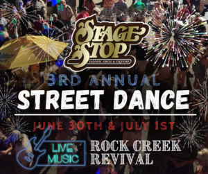 Don’t miss Stage Stop’s 3rd Annual Street Dance, kicking off Independence Day weekend on June 30th, July 1st and July 3rd!